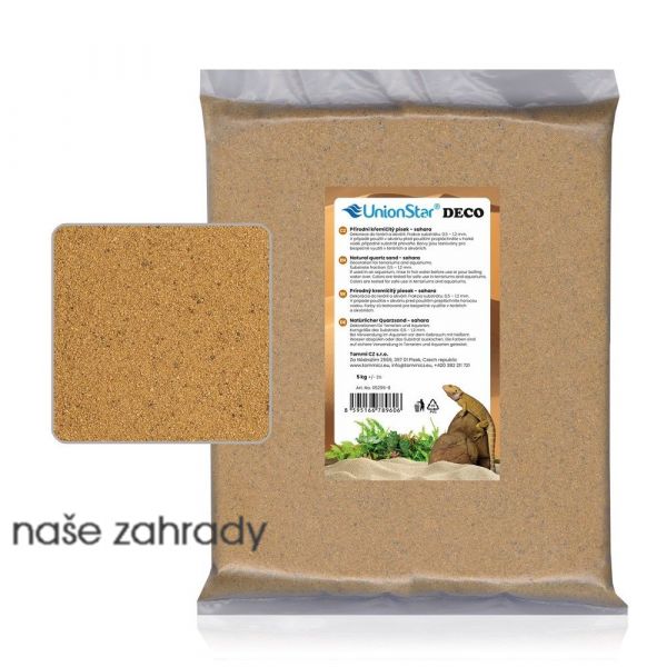 Terarijní písek DECO sahara 5 kg je vysoce kvalitní přírodní křemičitý substrát s jemnou frakcí 0,5–1,2 mm, dostupný v různých přírodních a atraktivních barevných odstínech. Písek je speciálně barvený testovanými technologiemi, které jsou bezpečné pro použití v teráriích i akváriích – nemění pH vody ani její chemické vlastnosti.