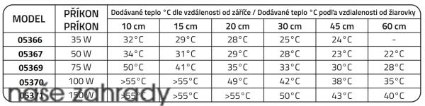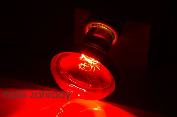 • Červené sklo propouští infračervení vlny produkované vláknem žárovky.