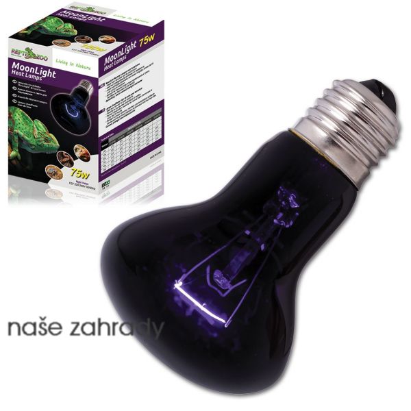 Terarijní žárovka ReptiZoo Moonlight 75W simuluje přírodní měsíční světlo pomocí modrého zabarvení skla