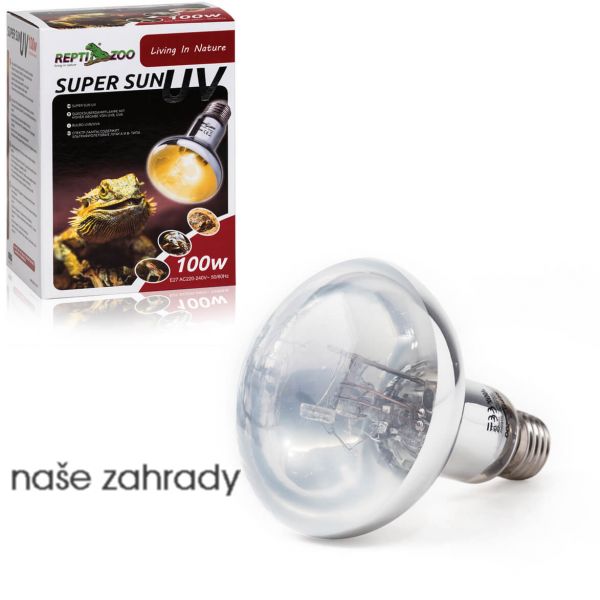 Sluneční terarijní žárovka ReptiZoo Super Sun UVA/UVB 100W. Širokospektrální žárovka UVA/UVB do terarijní lampy vydává světlo podobné slunečnímu záření a teplo. Nejlépe vyhovující poměr UVA, UVB a infračerveného světla je vhodný například pro plazy v teráriu, neboť podporuje tvorbu vitamínu D pro správný růst a vývoj zvířete. Každému terarijnímu zvířeti musíme jim zajistit světelné podmínky co nejvíce se blížící jeho přirozenému prostředí. V případě chovu chameleonů je velmi důležité UVA a UVB záření. U malých terarijní nádrží postačí např. úsporná UVB žárovka, která zajistí i denní světlo.