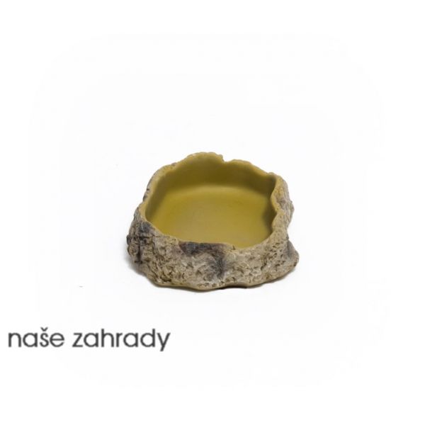 Terarijní miska ReptiZoo 11cm na krmivo pro živočichy velikosti XS. Miska do terária byla odlita z bezpečného polyresinu. Povrchová úprava je zpracována tak, aby miska svým vzhledem co nejvíce připomínala přírodní dekoraci, kámen, skalku, apod. Misky jsou tvarovány odlitím ve formách a jsou mimořádně odolné.