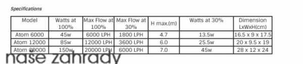 Evolution Aqua Atom Pump 12000 je regulovatelné čerpadlo určené pro jezírka, které pochází z Velké Británie. S maximálním výkonem 12 000 litrů za hodinu a bezpečnému napětí 24V je schopno poskytnout silný proud vody pro vaše jezírko a je ideální pro nádrže ke koupání. Jeho maximální dopravní výška vody dosahuje 6 metrů, což umožňuje efektivní provoz i při napájení větších vodopádů..