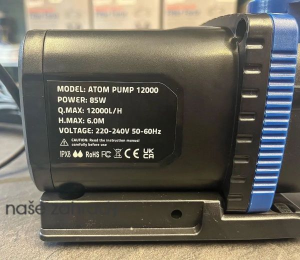 Celkově je Evolution Aqua Atom Pump 12000 spolehlivým a výkonným čerpadlem, které je ideální volbou pro provoz v jezírkách a dalších vodních aplikacích. Díky svému regulovatelnému výkonu a energetické úspornosti poskytuje efektivní a ekonomický provoz. Obr. 5 - ilustrační